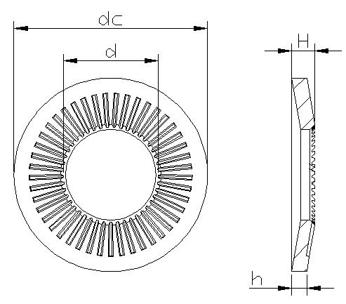拧紧用带条痕锥形垫片,代号:CS 法标NFE25-511垫圈,简称法式垫圈。
